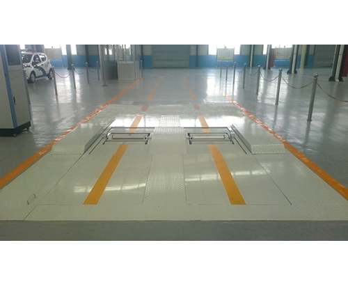 前滾筒組的前部和后滾筒組的后部裝有防止測試時車輛沖出試驗臺的安全滾筒保護裝置。為了便于車輛進出試驗臺,在每對滾筒的中間安裝有氣動舉升器。